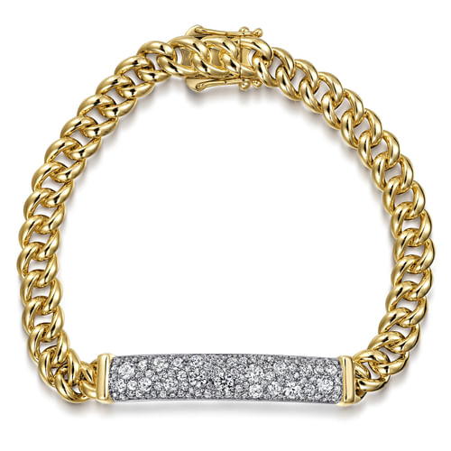 14K 7mm Solid Cuban Link Chain Bracelet with Pave Diamond ID Plate