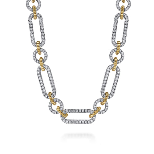 14K Yellow-White Chain Pave Link Necklace