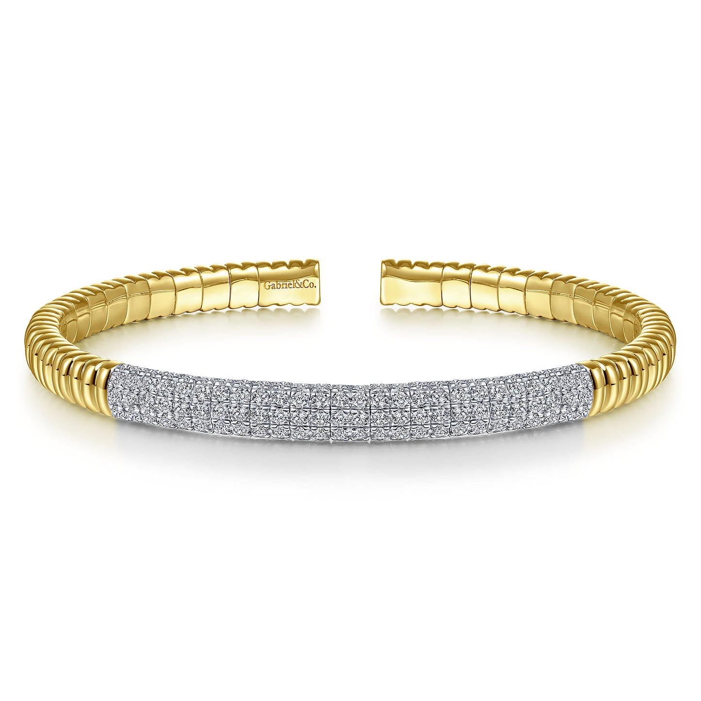 Demure - 14K Yellow Gold Cuff Bracelet with Diamond Pave Station
