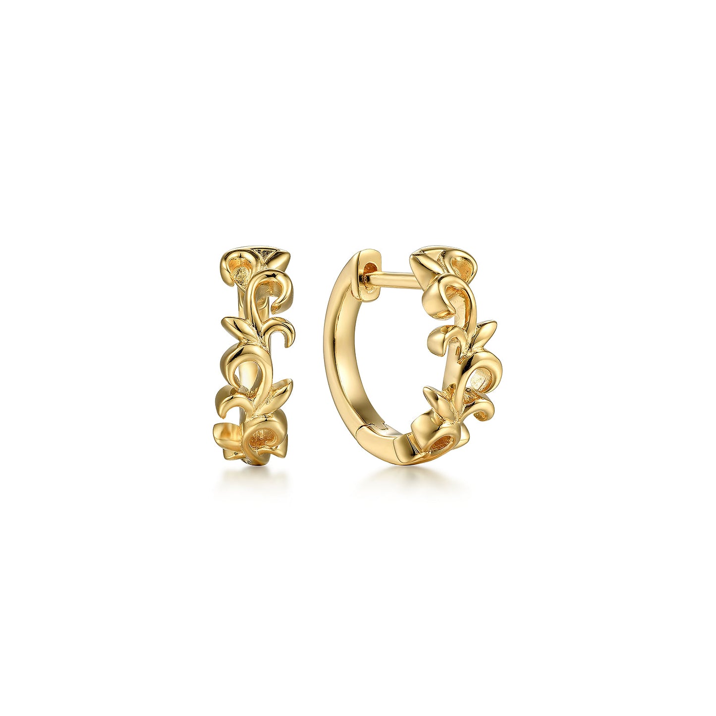 14K Yellow Gold Floral Huggie Earrings