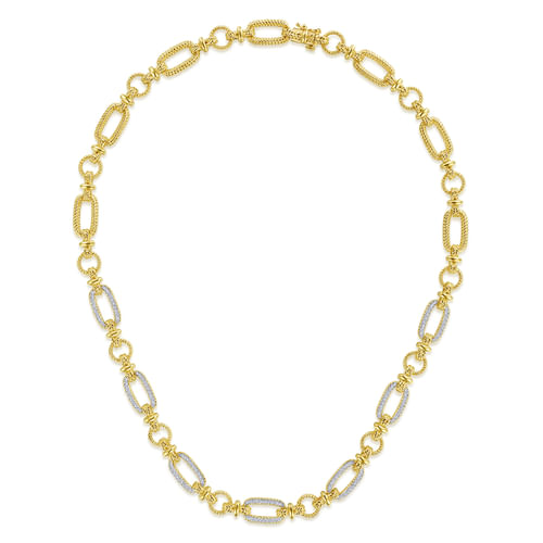14K Yellow-White Chain Pave Link Necklace