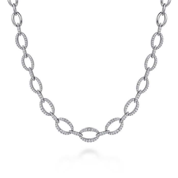 18K White Gold Graduating Oval Link Diamond Necklace