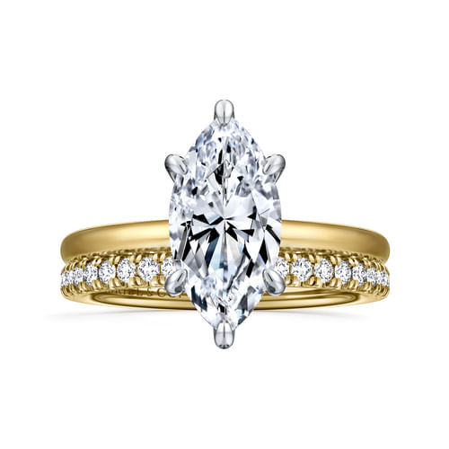 Cari - 14K White-Yellow Gold Hidden Halo Marquise Shape Diamond Engagement Ring