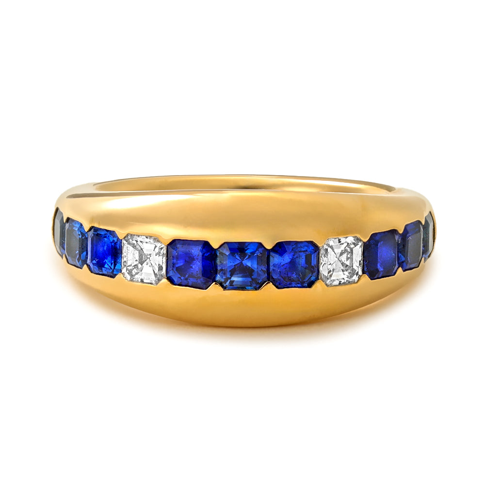 Gypsy Asscher Cut Sapphire and Diamond Ring