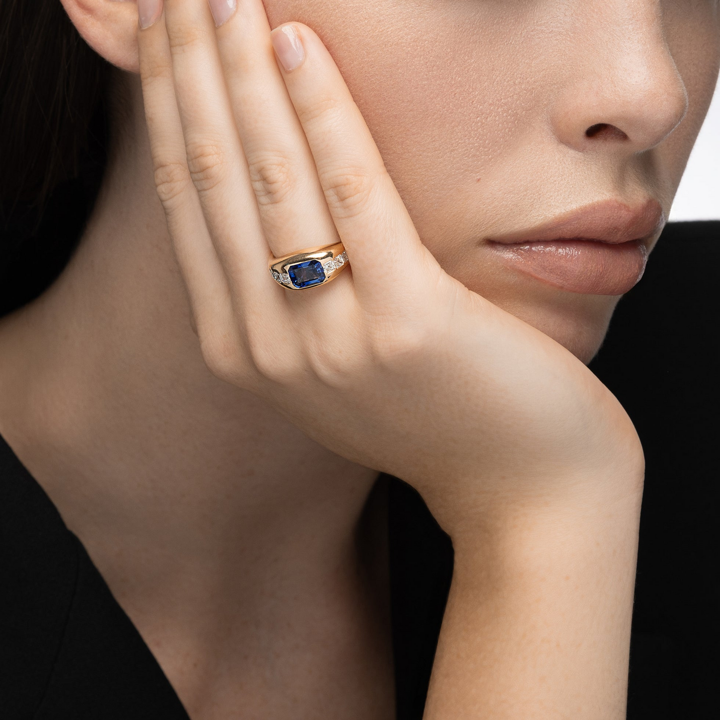 Add Gypsy Asscher Cut Sapphire and Diamond Ring to the cart