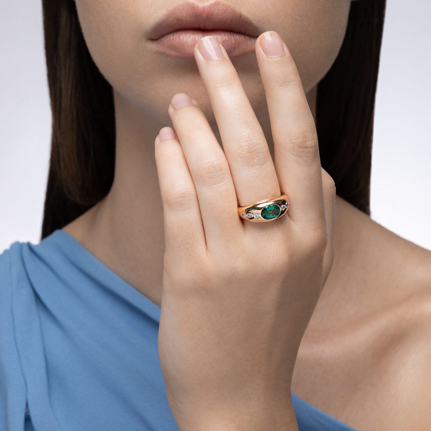 Gypsy Oval Emerald and Diamond Ring
