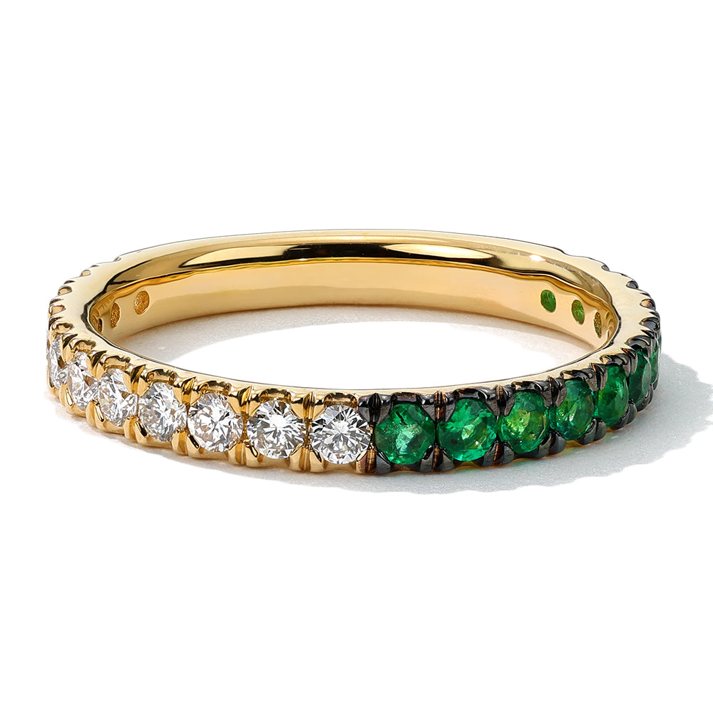 Half and Half Emerald and Diamond Thread Ring