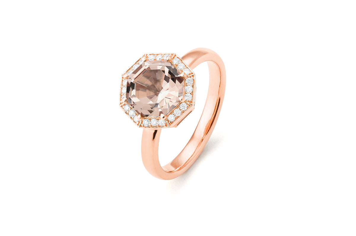 Morganite Octogon Halo Ring