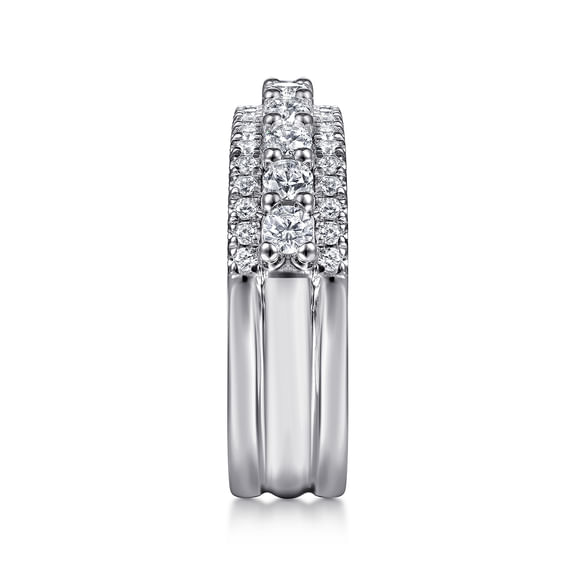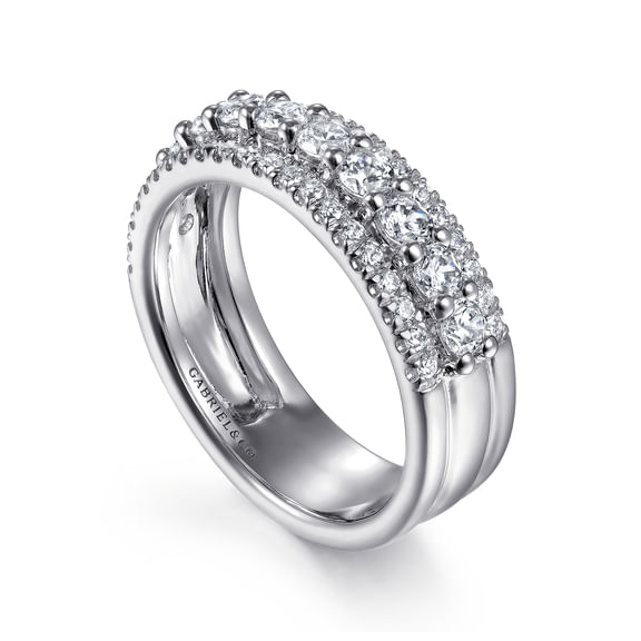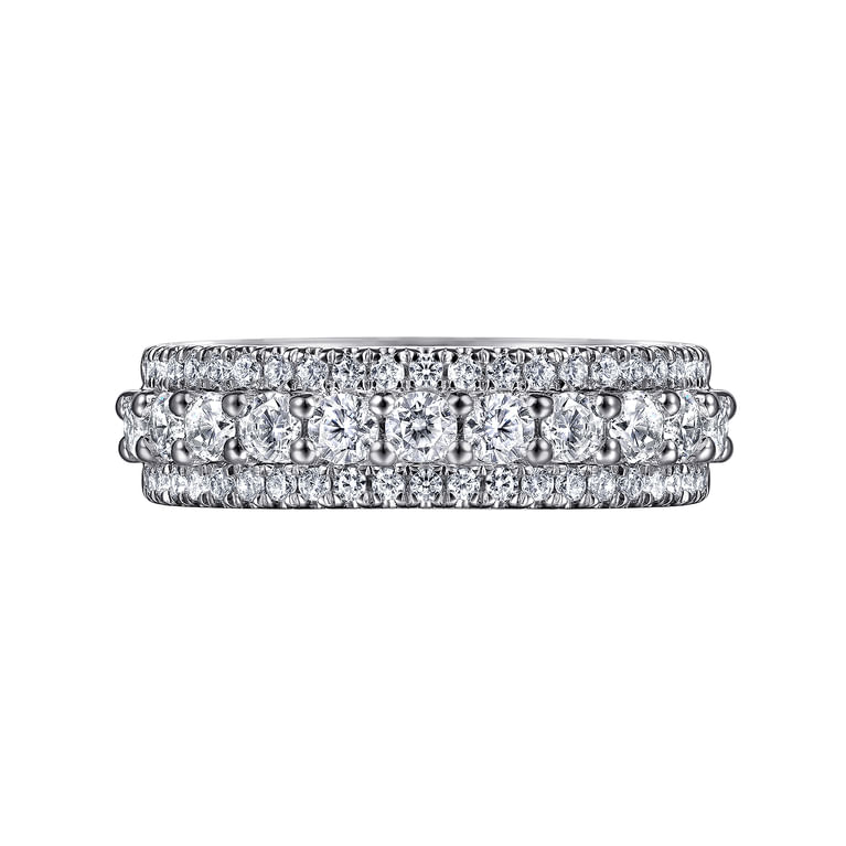 Three row diamond band in 14k white gold that is 6.1mm wide. The diamonds are G-H-SI quality, 1.00ctw.